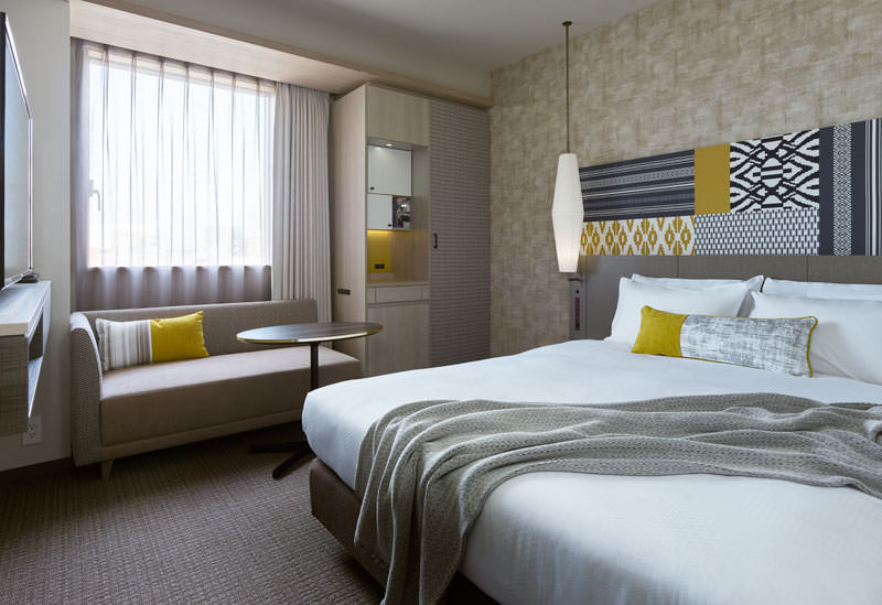 2020년 7월, 후쿠오카 중심지 나카스에 문을 연 미쓰이 가든 후쿠오카 나카스 호텔은 역사와 문화를 모티브로 한 세련된 인테리어가 돋보인다. 로비와 복도, 객실 곳곳이 고급스러운 분위기로 꾸며져 있어 도심 한복판에서도 한층 차분하고 프라이빗한 휴식을 즐길 수 있다.