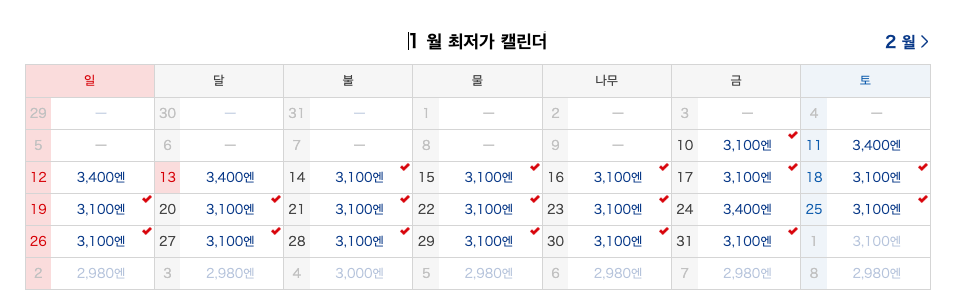 우에노 출발 평일 기준 우에노 출발 주말 기준