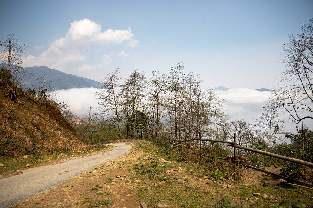 지름길이라 불러도 될 정도의 좁은 길을 따라 계속 오른다. 이 길로 마을 사람들도 오가고 오토바이도 다닌다. 사진 상으로는 그닥 경사가 심해 보이진 않지만 허리를 계속 숙이고 올라야 할 정도로 경사가 심하다.